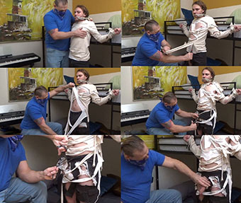 Still bound and gagged and nearly naked, the young musician was helpless as the angry man decided to degrade and humiliate him. The man took the musician’s cock and started to stroke it. The younger man tried to resist but the man was too good, and soon he was responding to the pleasure, his cock growing tall and hard. The young man eventually gave in and started to grunt and moan and shot his load onto the floor.